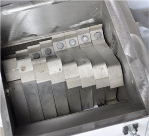 | 型号 | 功率 (kw) | 转子直径 (mm) | 碎料室尺寸 (mm) | 动刀片 | 定刀片 | 碎料量 (kg/h) | 转速 (r/min) | 管网孔径 (mm) | 机械尺寸 (cm) | 重量 (kg) |